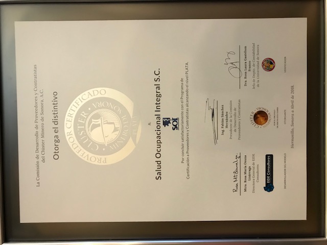 DetallesCertificación Plata de Salud Ocupacional Integral por el Cluster Minero de Sonora